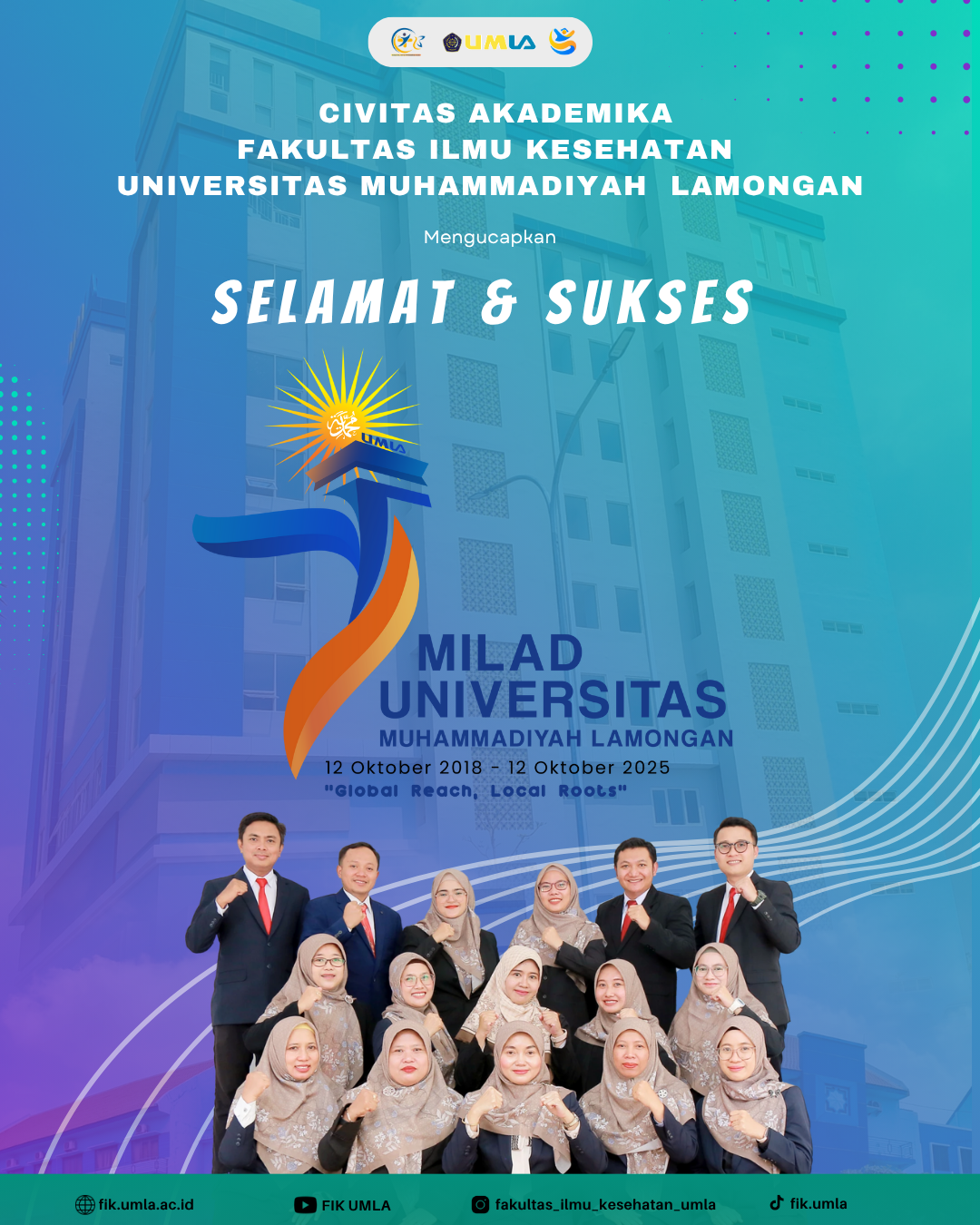 CIVITAS AKADEMIKA FAKULTAS ILMU KESEHATAN UNIVERSITAS MUHAMMADIYAH LAMONGAN MENGUCAPKAN SELAMAT DAN SUKSES MILAD UNIVERSITAS MUHAMMADIYAH LAMONGAN YANG KE-7 (12 Oktober 2018 - 12 Oktober 2025).